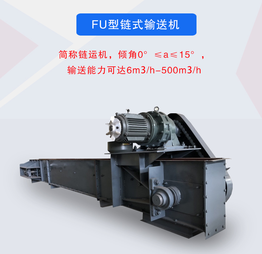 1、FU型鏈?zhǔn)捷斔蜋C(jī):簡(jiǎn)稱鏈運(yùn)機(jī),傾角0°≤a≤15°,輸送能力可達(dá)6m³/h-500m³/h。