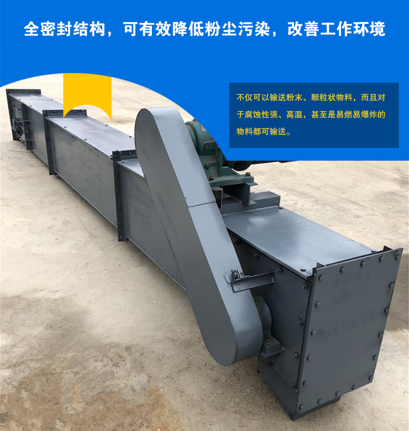 埋刮板鏈?zhǔn)捷斔蜋C(jī)是借助刮板鏈條在封閉的矩形斷面的殼體內(nèi)連續(xù)輸送散狀物料的運(yùn)輸設(shè)備,刮板鏈條完全埋在物料下面,埋板板鏈?zhǔn)捷斔蜋C(jī)機(jī)殼采用全密封結(jié)構(gòu),無(wú)粉塵污染.