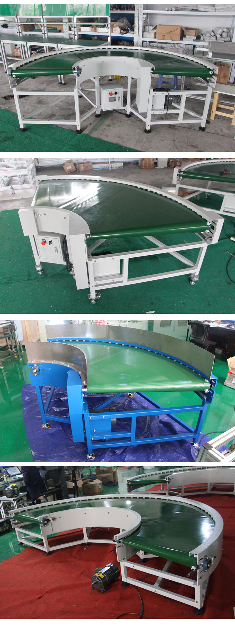 1、轉彎皮帶機結構形式有30度轉彎皮帶機、45度轉彎皮帶機、90度轉彎皮帶機、180度轉彎皮帶機, 能滿足各種轉彎輸送的工藝要求。