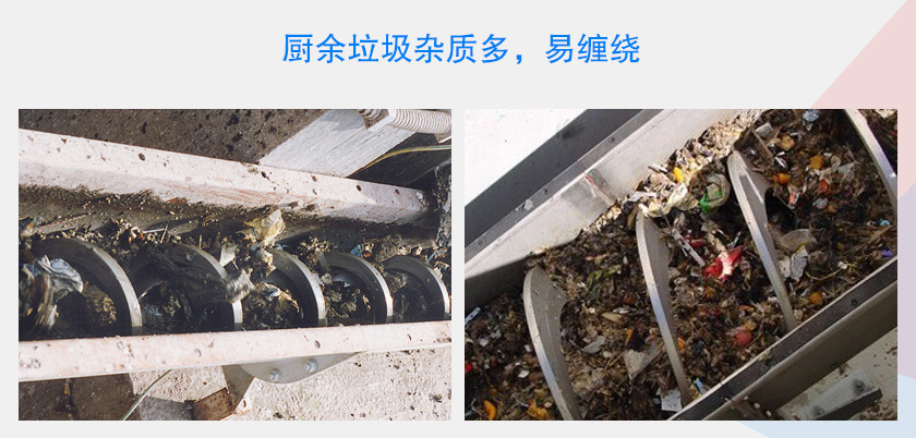 廚余垃圾一般是日常生活中丟棄的菜葉、果皮、剩飯剩菜等,里面含有的雜質(zhì)多,且大小不一,使用普通螺旋輸送機會導致物料粘在葉片上,造成堵料現(xiàn)象,不僅影響輸送效率,還會導致螺旋輸送機損壞。無軸螺旋輸送機由于采用無軸設(shè)計,排除了廚余垃圾纏繞在葉片上的問題,因此非常利于輸送。
